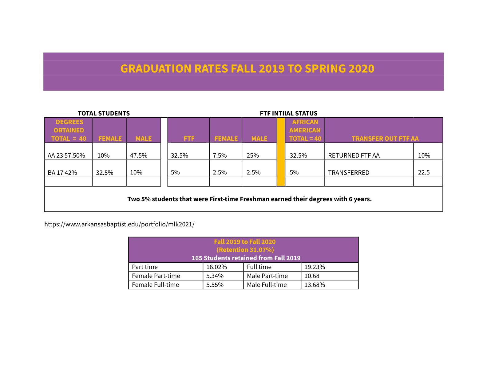 Arkansas Baptist College provides students focused, real world learning experiences. The curriculum is presented on-ground and on-line in small classes, with personal individualized instruction with academic support services. The diverse methods of teaching and learning to promote student engagement is conducted in newly renovated academic buildings. Arkansas promote student engagement is conducted in newly renovated academic buildings. Arkansas Baptist College is invested and committed to the success of all students. The College prepares students to enter the increasingly competitive global workforce and to explore the opportunities of entrepreneurship.