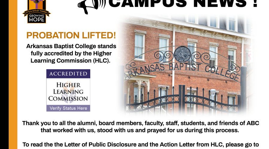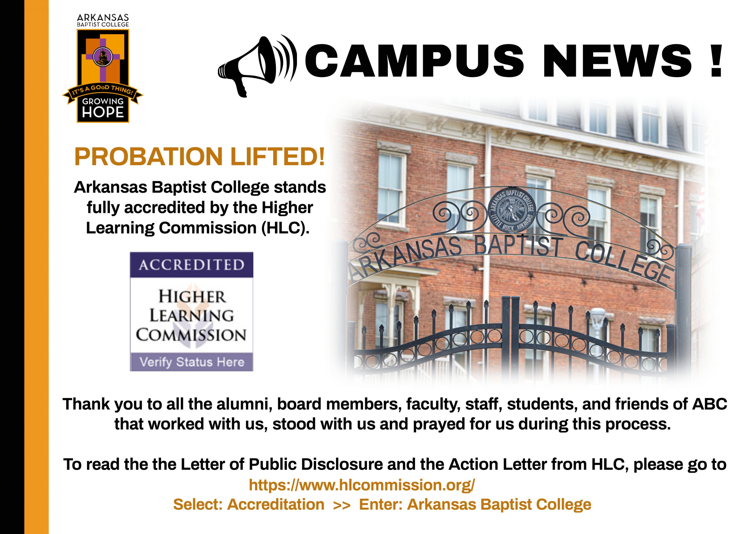 PROBATION LIFTED! HLC FULLY ACCREDITATES ARKANSAS BAPTIST COLLEGE