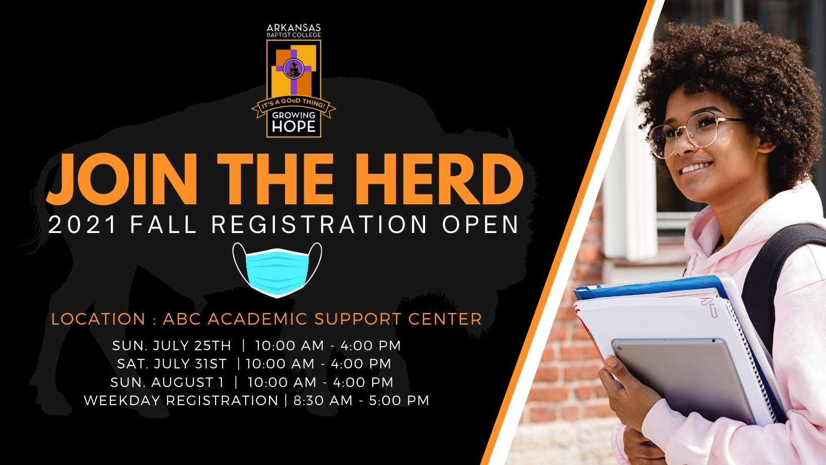Effective December 16, 2022, COVID-19 vaccinations and face masks are no longer required on the Arkansas Baptist College campus.