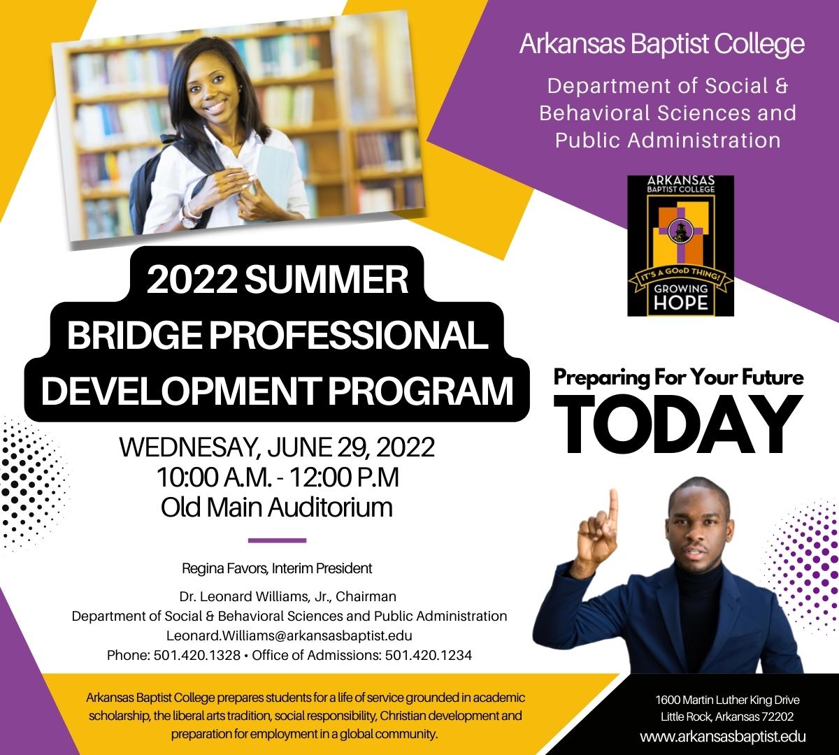 The Department of Social/Behavioral Science and Public Administration along with the Department of Interdisciplinary Studies is hosting its 2nd forum entitled “Preparing for Your Future Today”.  This program is intended for Summer Bridge students but is open to the student body.  Seating is limited.  Please see the attached flyer!  Masks are highly recommended!